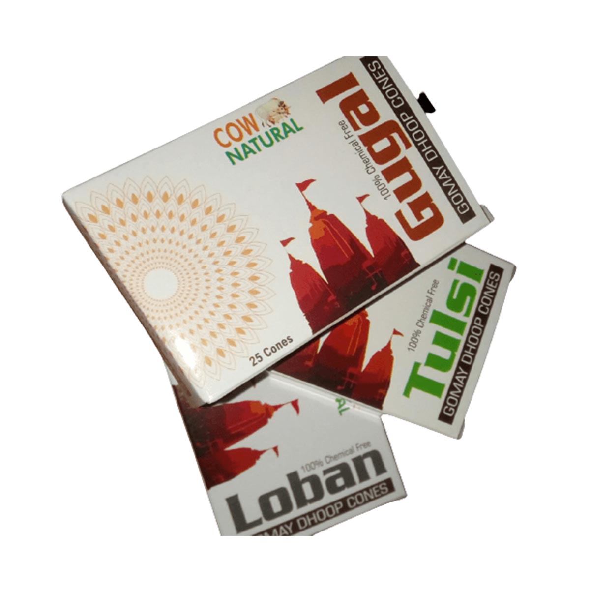 CowNatural Dhoop Cones Combo has combined set of three different dhoop cones namely – CowNatural Gugal Dhoop Cones, CowNatural Tulsi Dhoop Cones & CowNatural Loban Dhoop Cones.